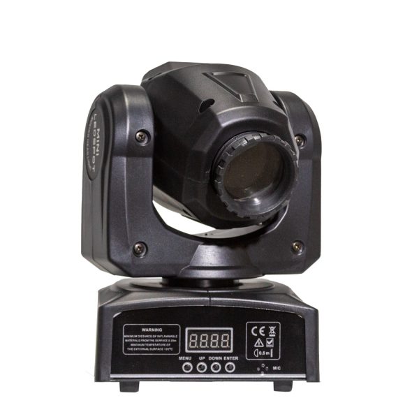 POWER SUPPLY 100-240V/50/60HZLIGHT SOURCE 1*30W WHITE LEDGOBO 7+OPENCOLOR 7+OPENPAN 540 TILT 270DMX CHANNEL 9/11AUTO/SOUND/DMX/MASTER-SLAVENET WEIGHT 2.7KG